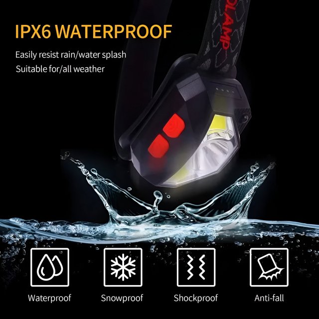 With 6 lighting modes, you can easily switch between XPG and COB LEDs to match your needs. Whether you need a bright, long-range beam for hiking or a softer red light for night fishing, this headlamp has you covered. The added motion sensor control feature allows for easy on/off functionality without touching the switch – ideal for when your hands are full or you’re wearing gloves.