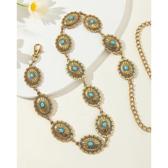 Gold Western Bull Head Chain Belt – Adjustable Boho Metal Waist Accessory